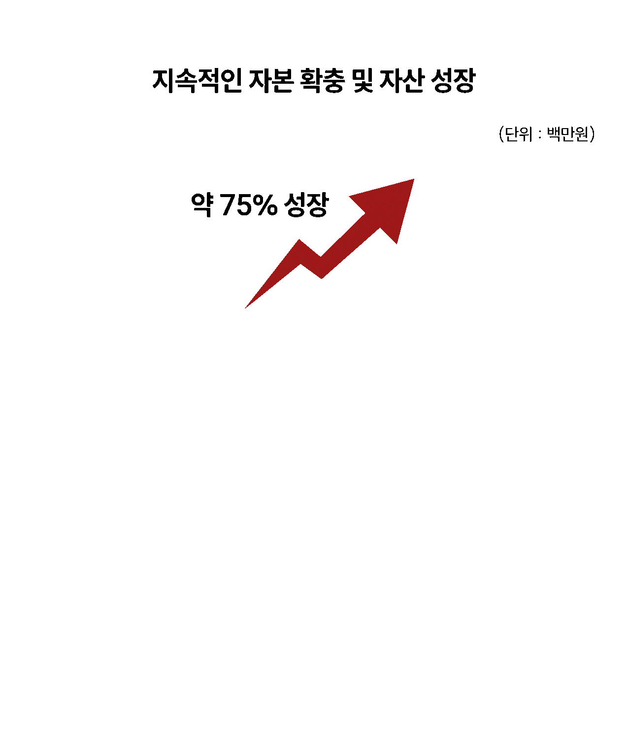 "투명한 경영, 탄탄한 재무구조" (주) 경수산업은 지속적인 매출 신장과 건전한 재무관리를 통해 무차입/안정 경영을 실현하고 있습니다.