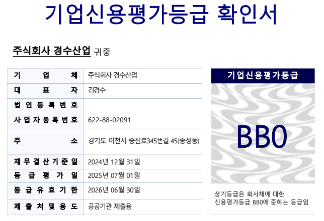 (주) 경수산업 경기도 이천시 증신로 345번길 45 | 경기도 화성시 팔탄면 하저자안로 11, 3F